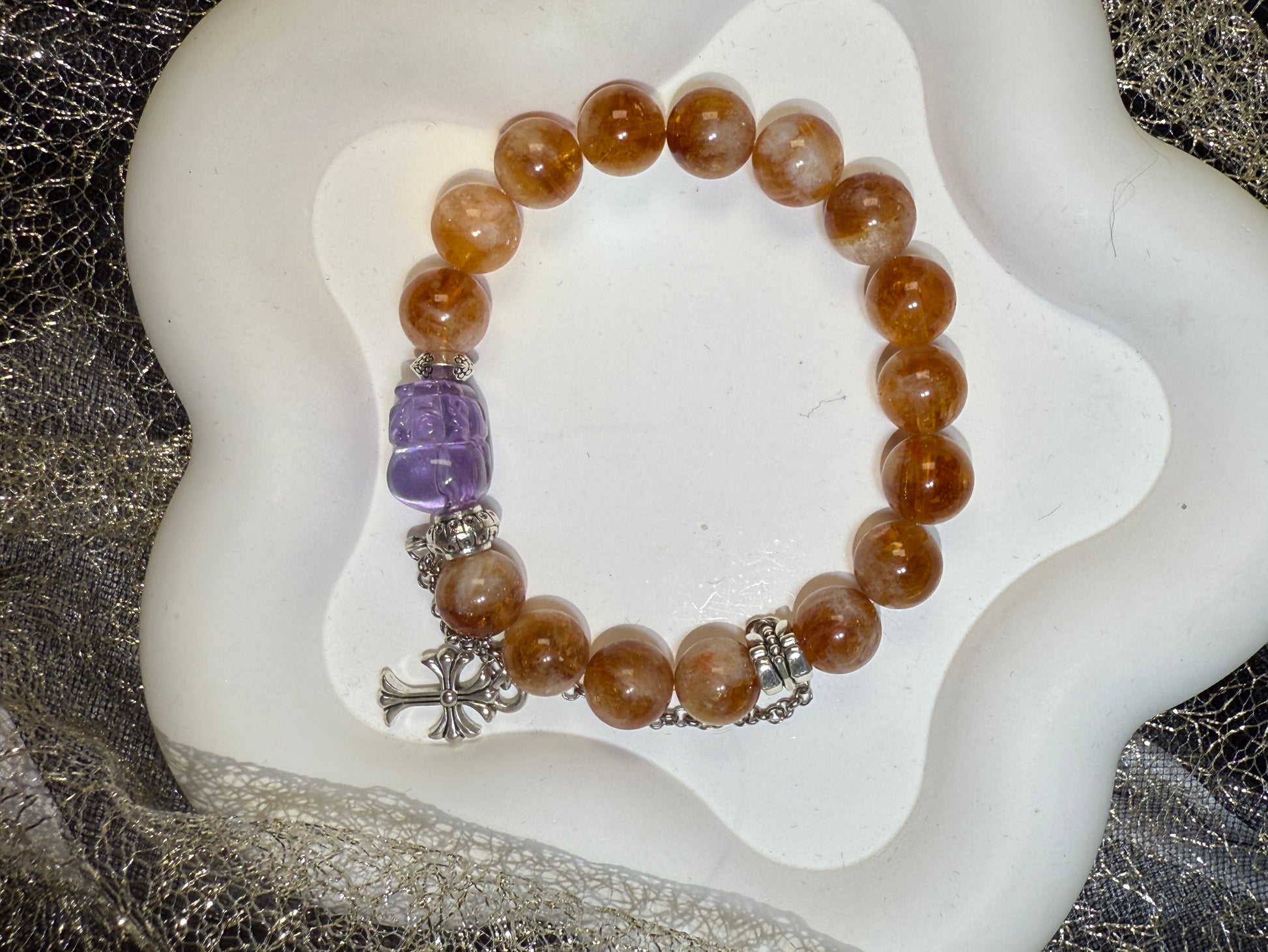 A fusion of golden warmth and quiet protection, Amber Pact features honey-milk citrine and a Pixiu carved from ametrine—a talisman of abundance and fortitude.
