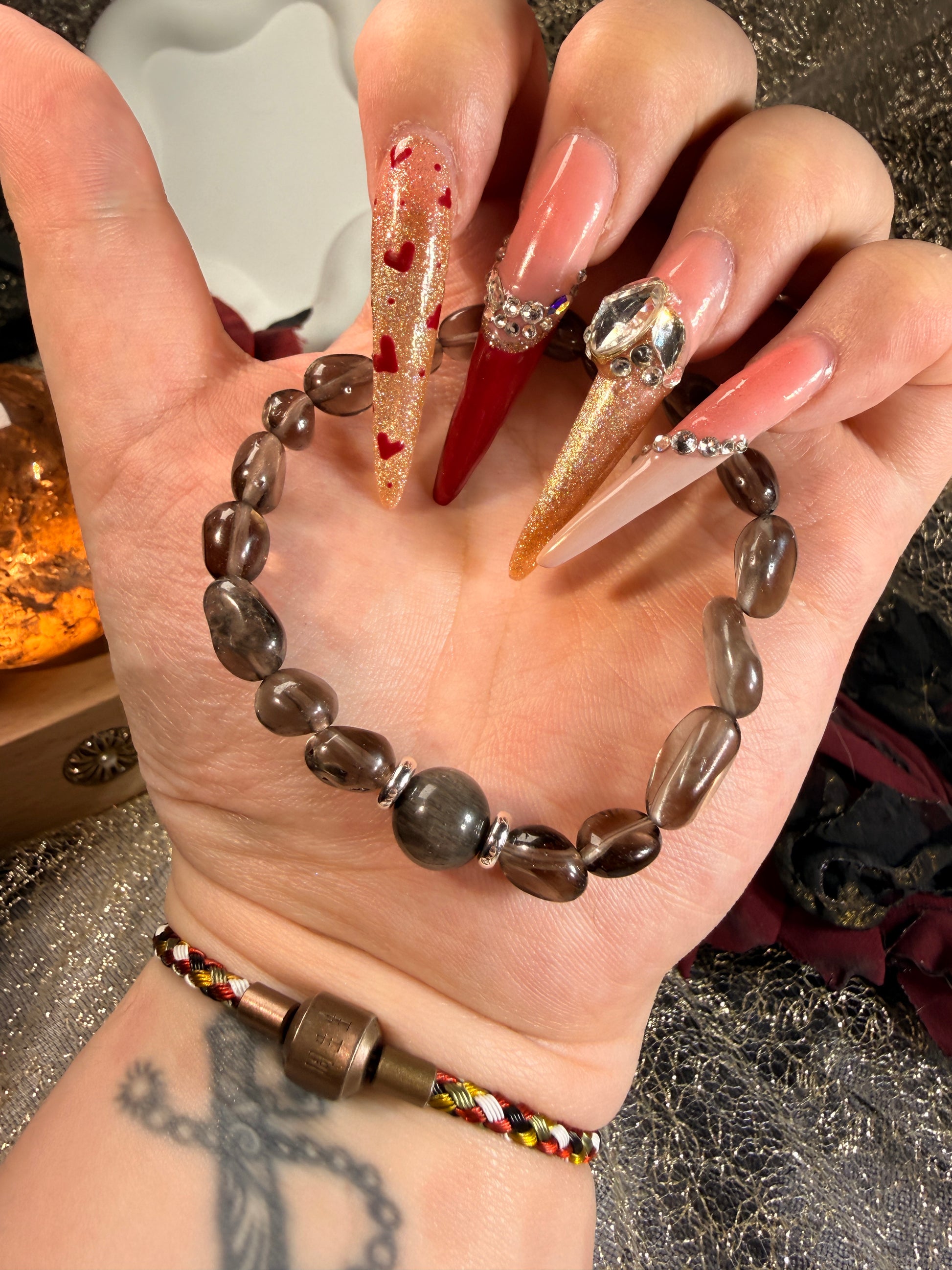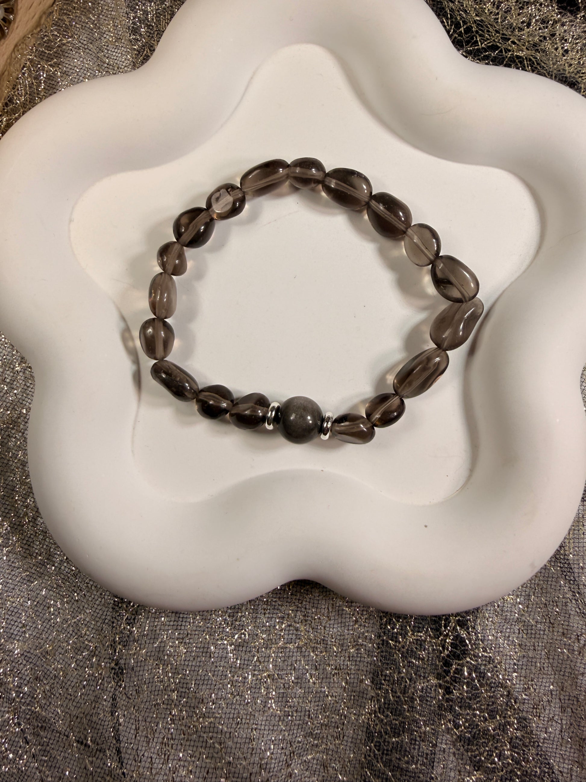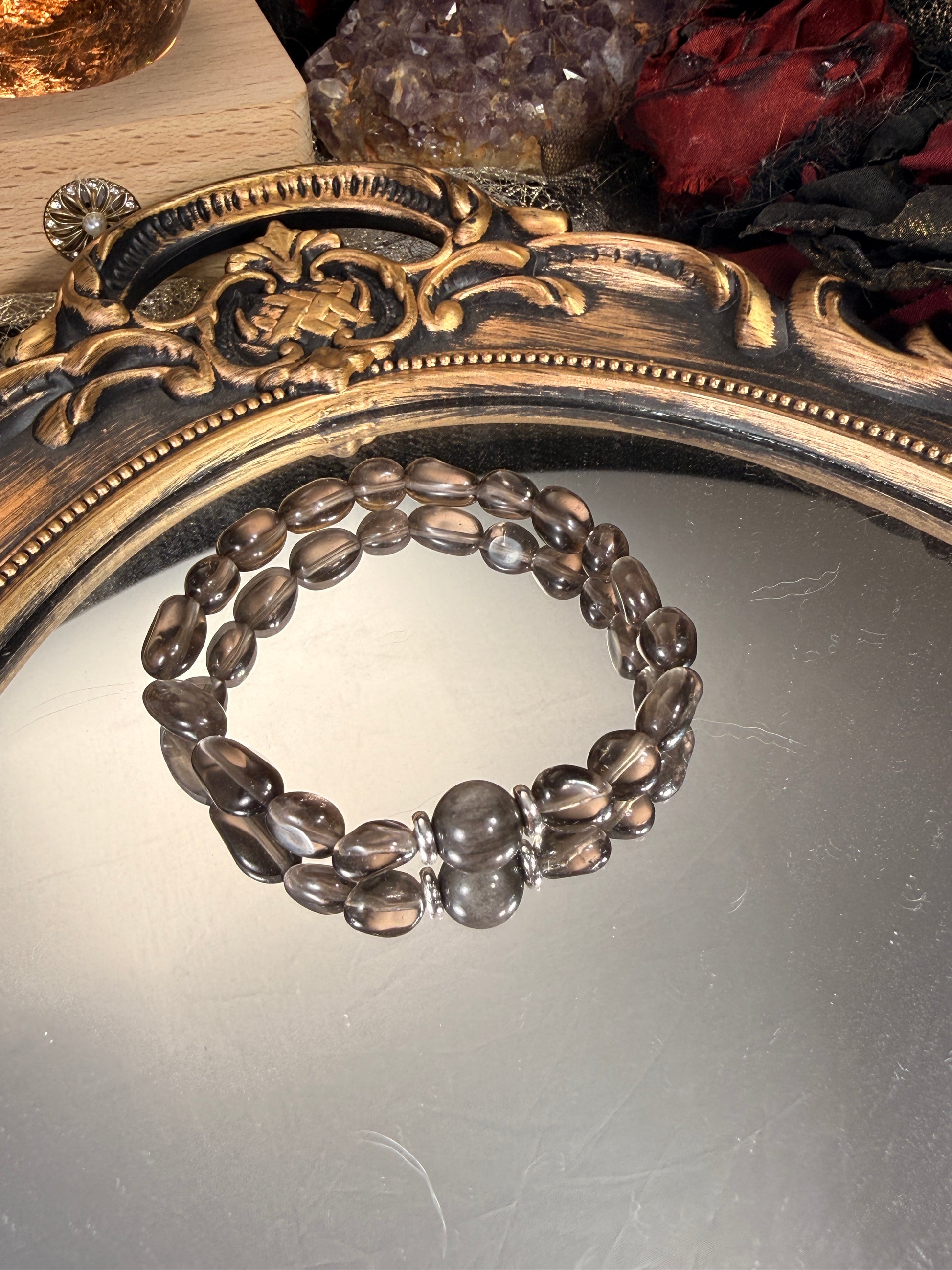 Smoky quartz absorbs scattered energy and emotional residue, helping the mind settle back into clarity.