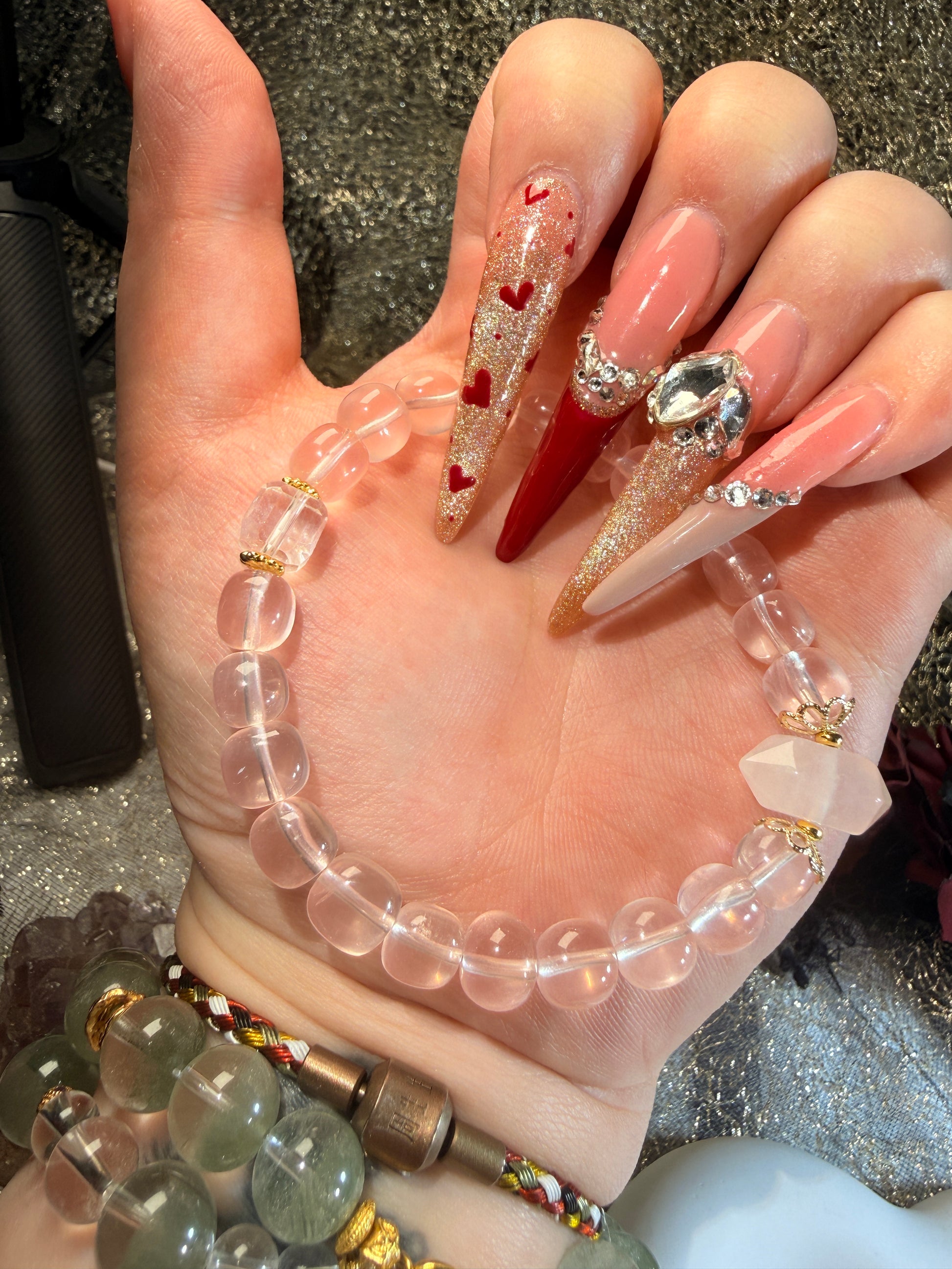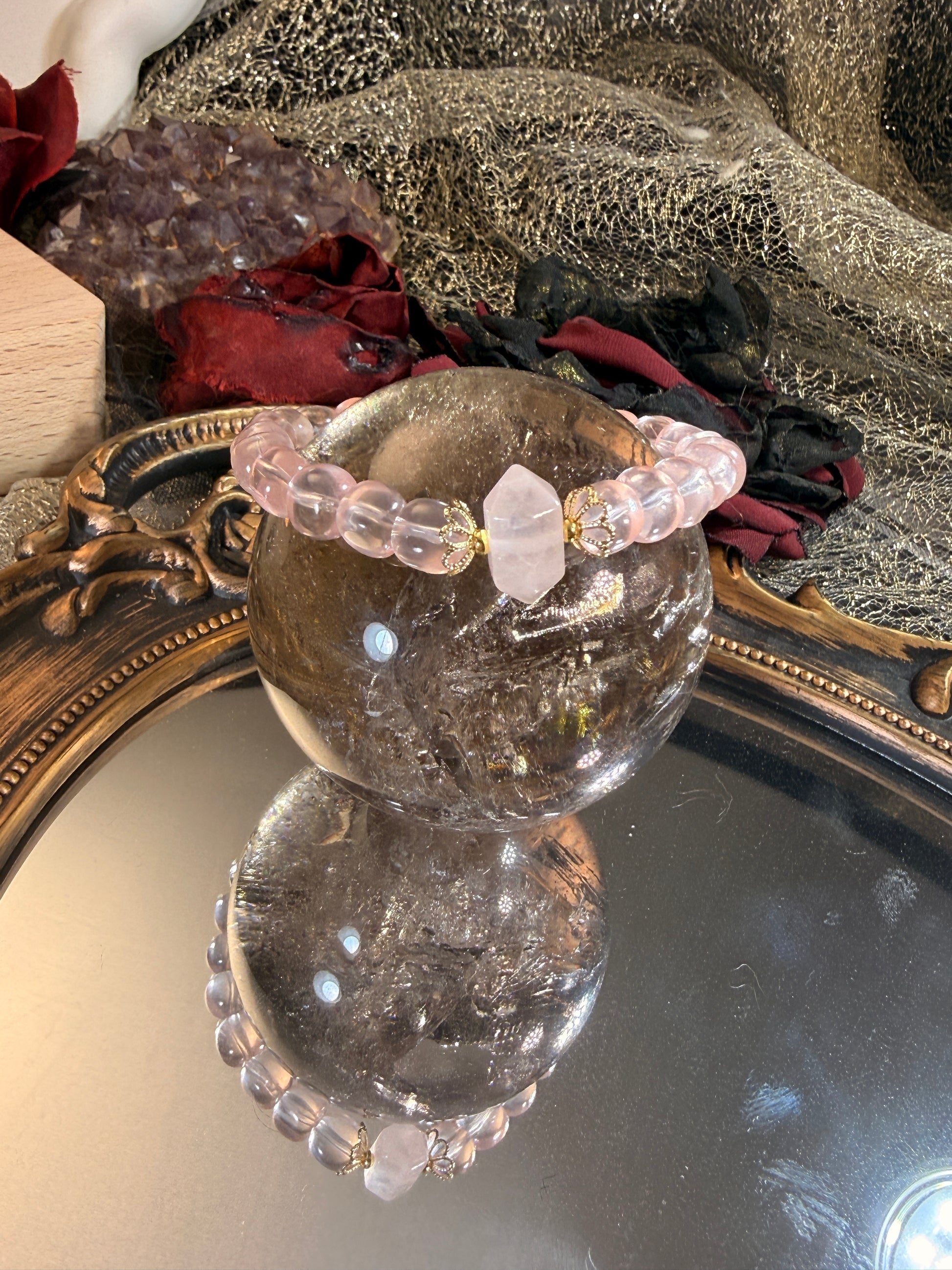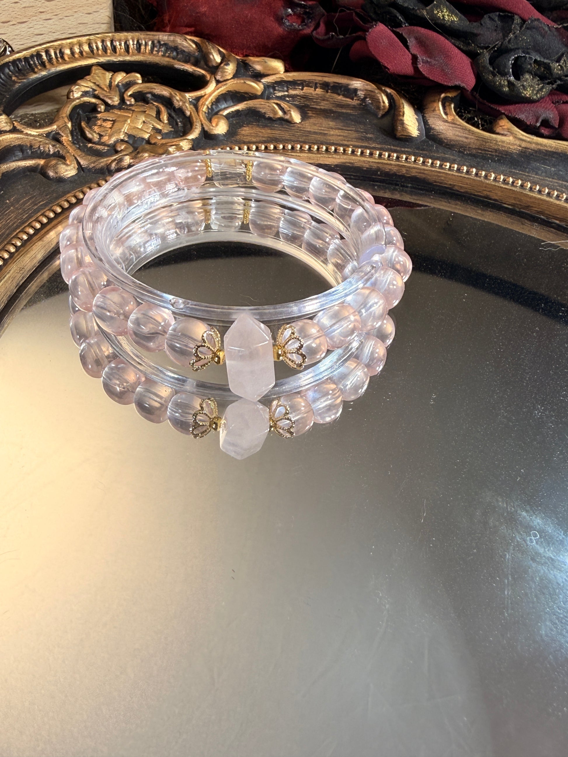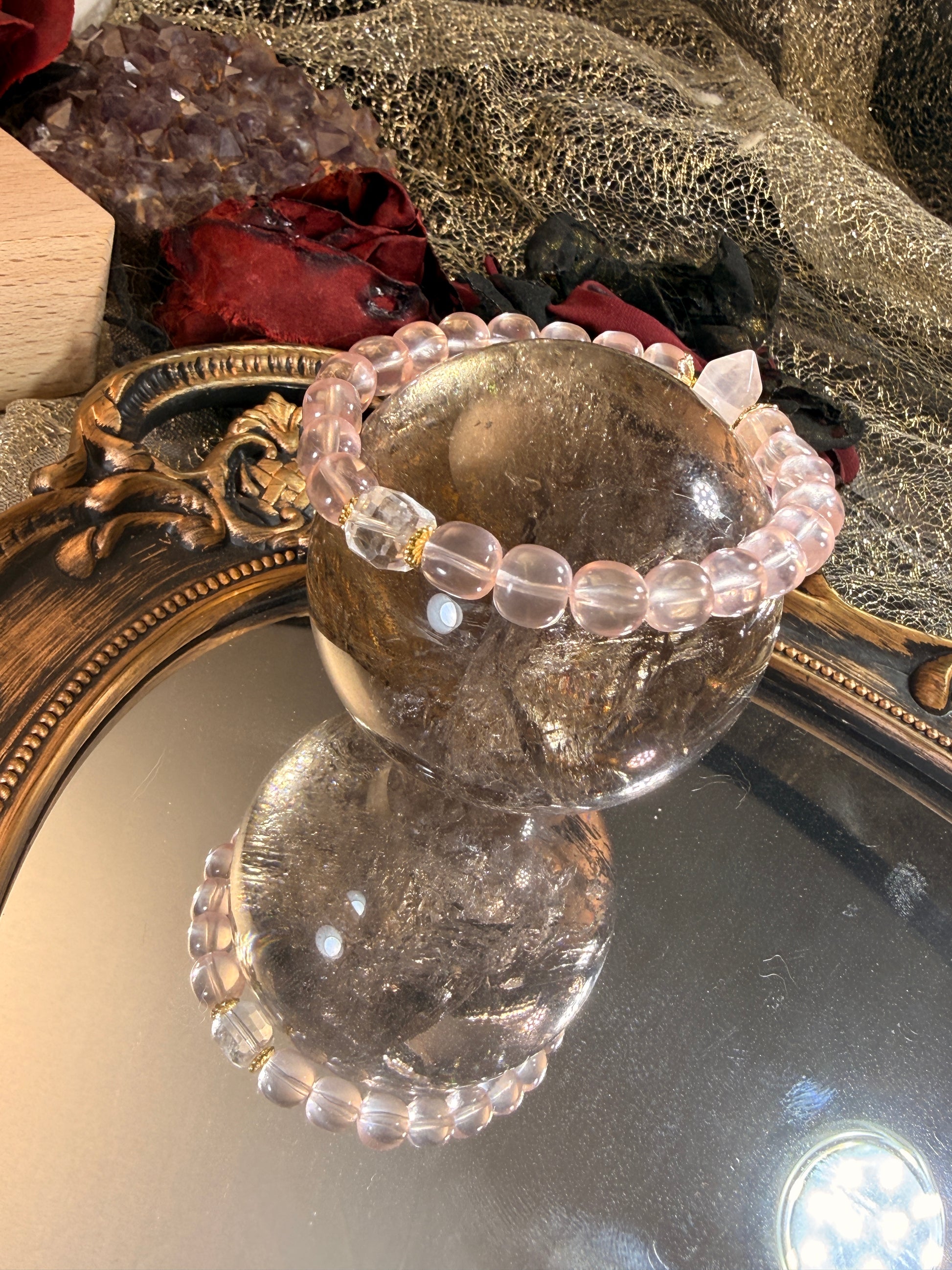 Ice Rose Quartz · Rose Quartz Double Point · Clear Quartz Cube Bracelet
