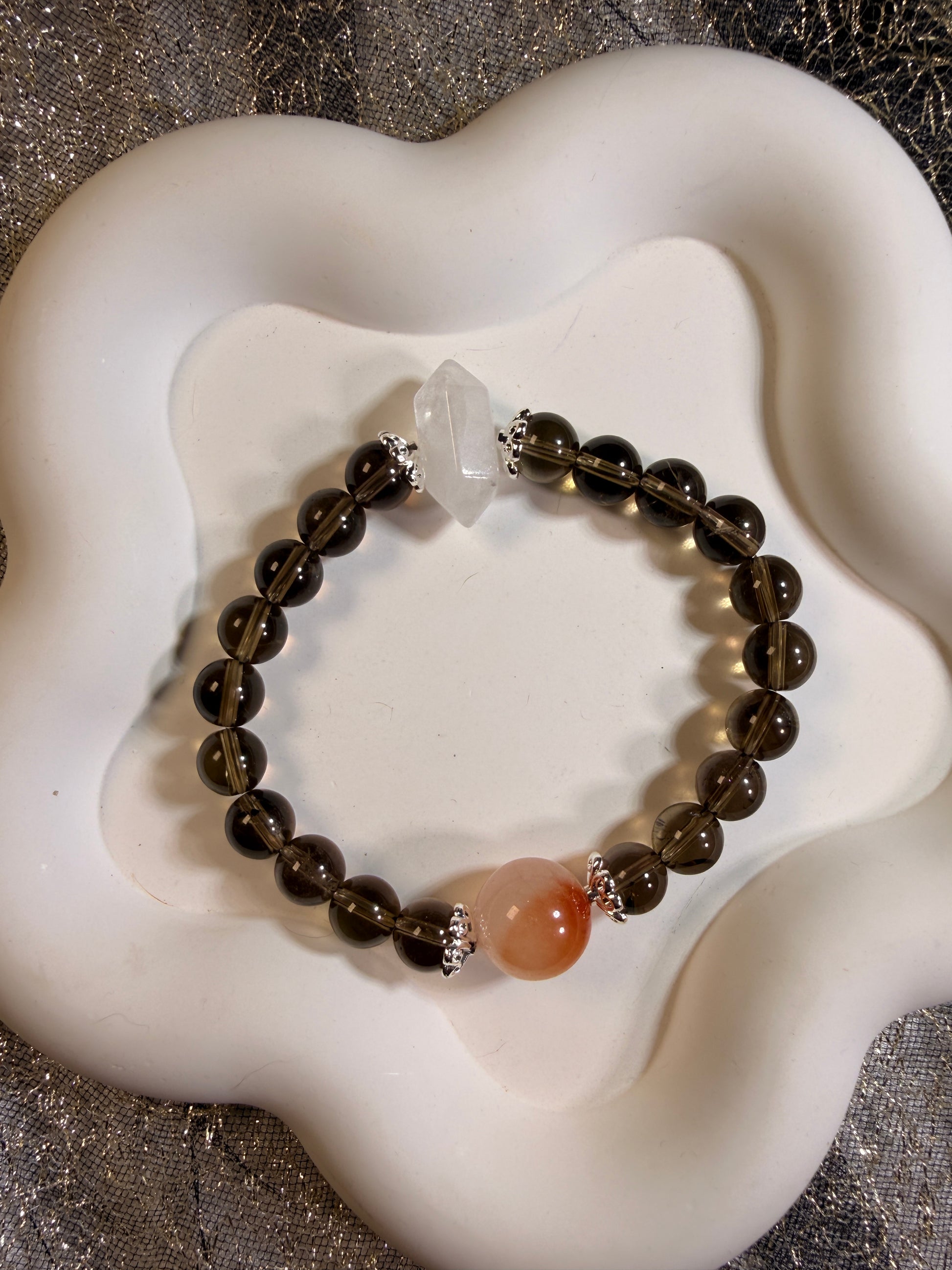 Nan Hong Agate × Smoky Quartz × Double-Terminated Clear Quartz