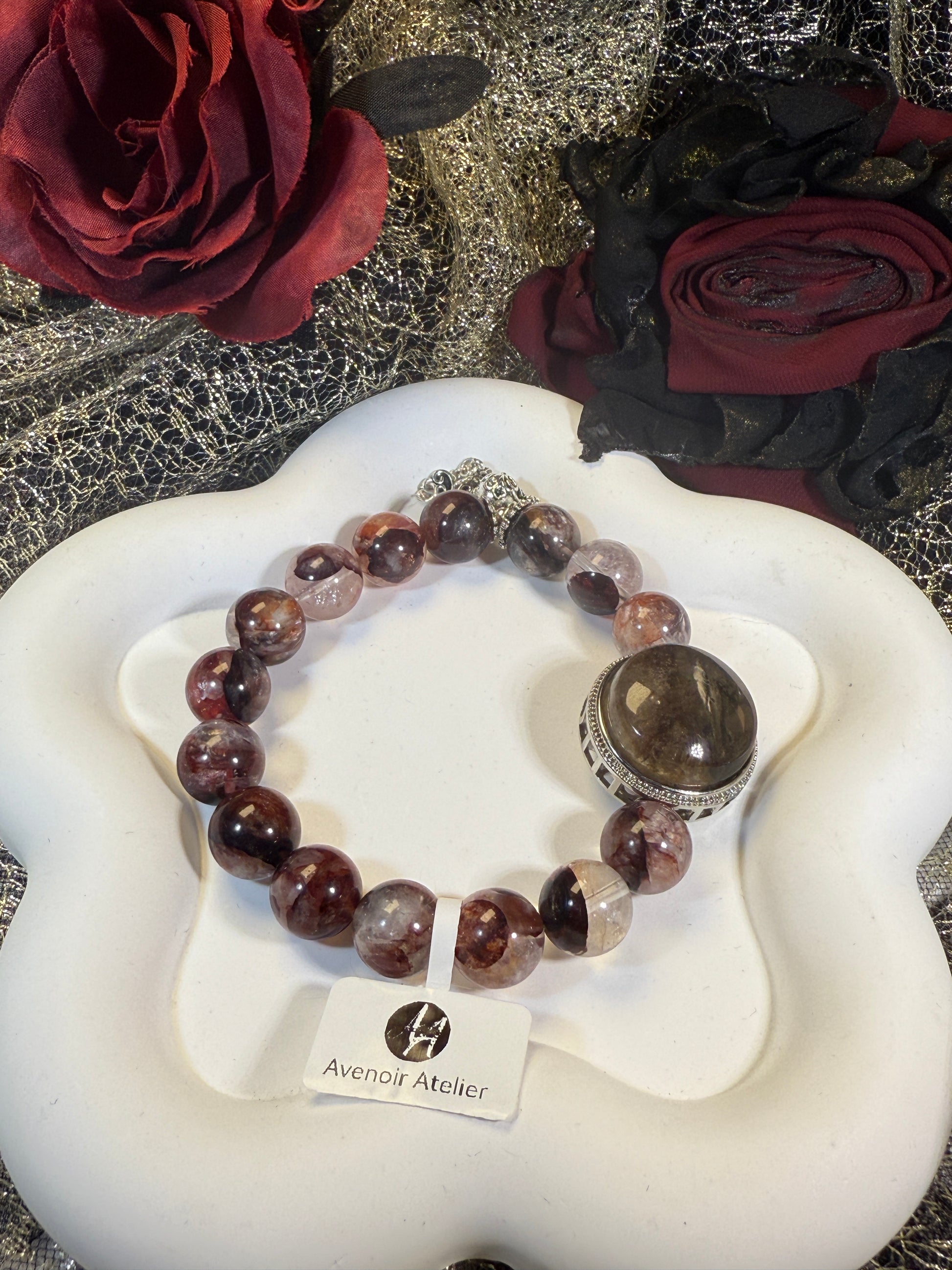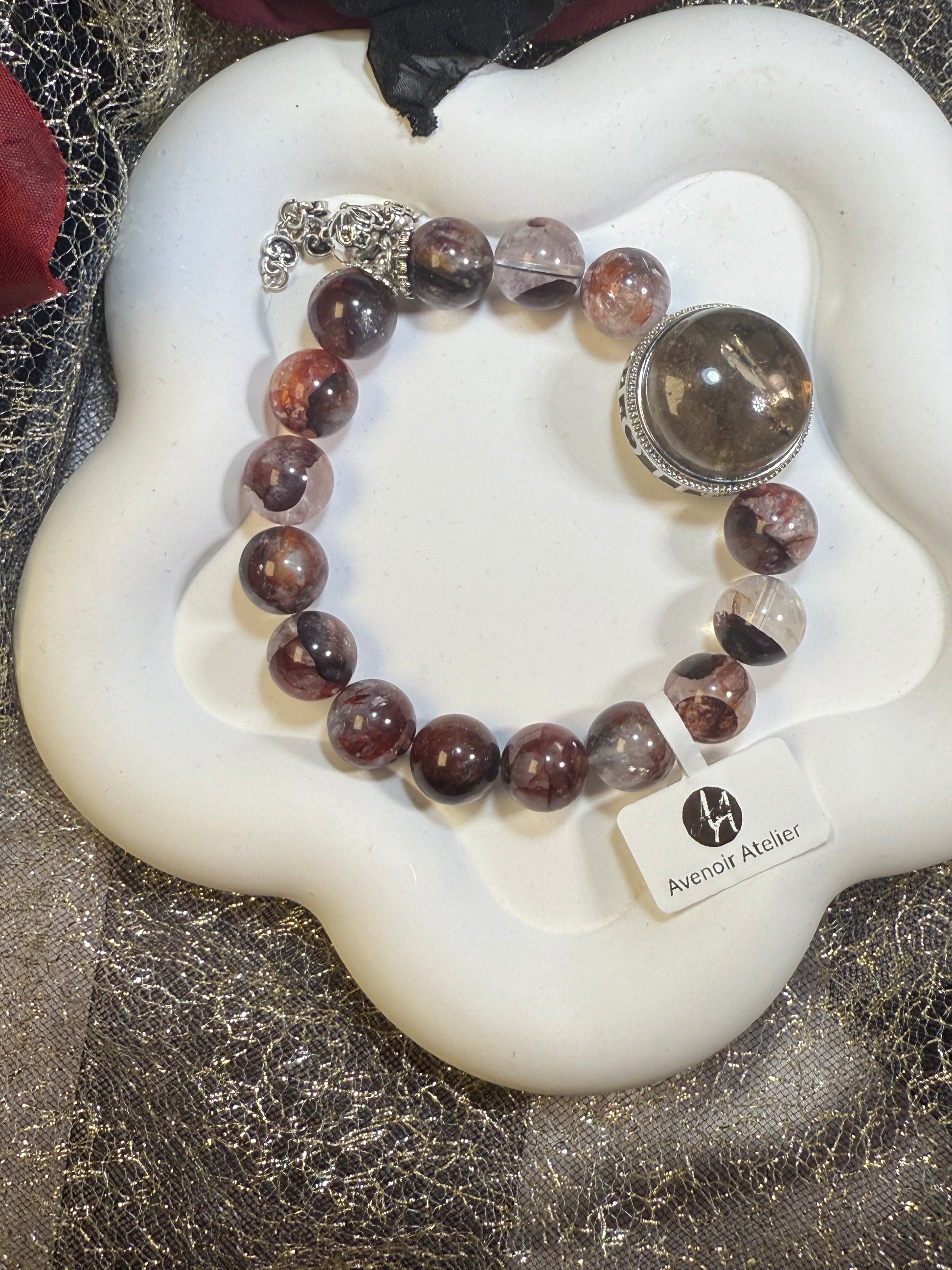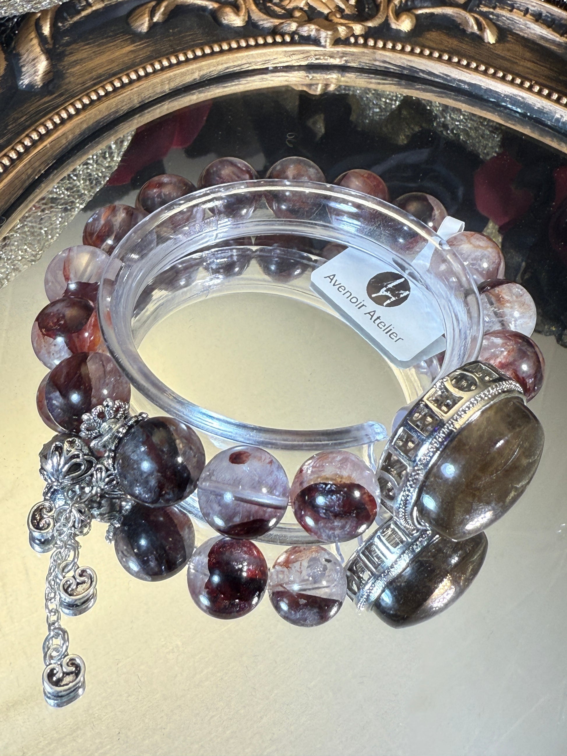 Nocturne Ember pairs deep red resin blooms with phantom box quartz—one symbolic, one mineral. Together, they feel like warmth buried in ash, or a flicker beneath silence. It doesn’t burn outward. It smolders inward.