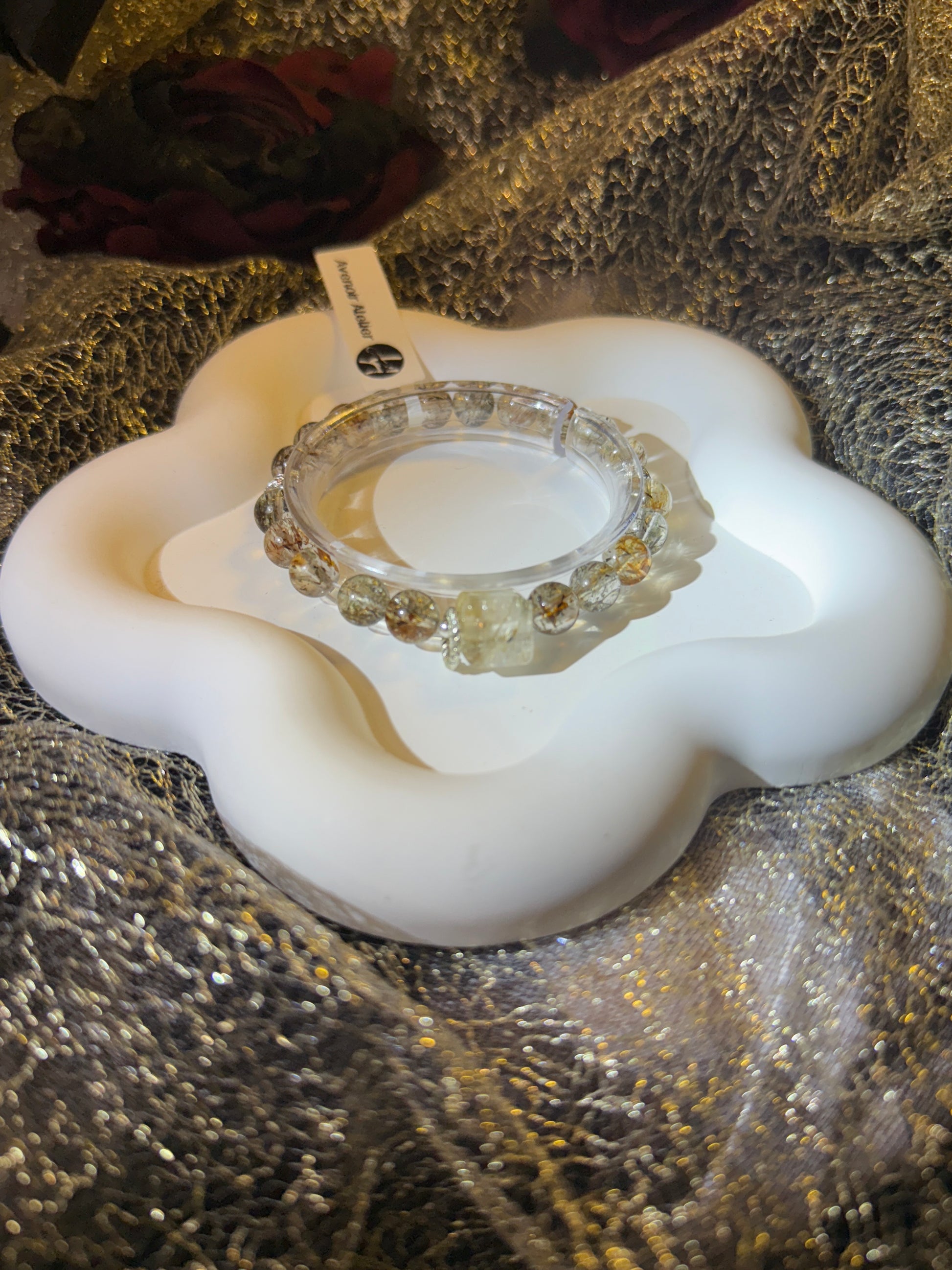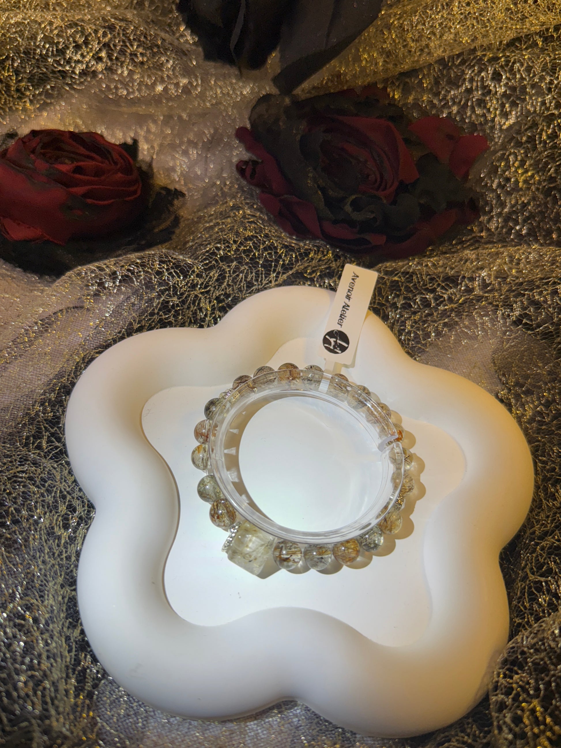 Composed of black rutilated quartz and petroleum phantom, Shadow Core channels the energy of the unseen. The fine golden threads within the darkness speak of clarity born through chaos, while trapped oil phantoms shimmer like distant stars in deep space. This piece embodies inner strength, hidden wisdom, and the silent power at the center of all transformation.
