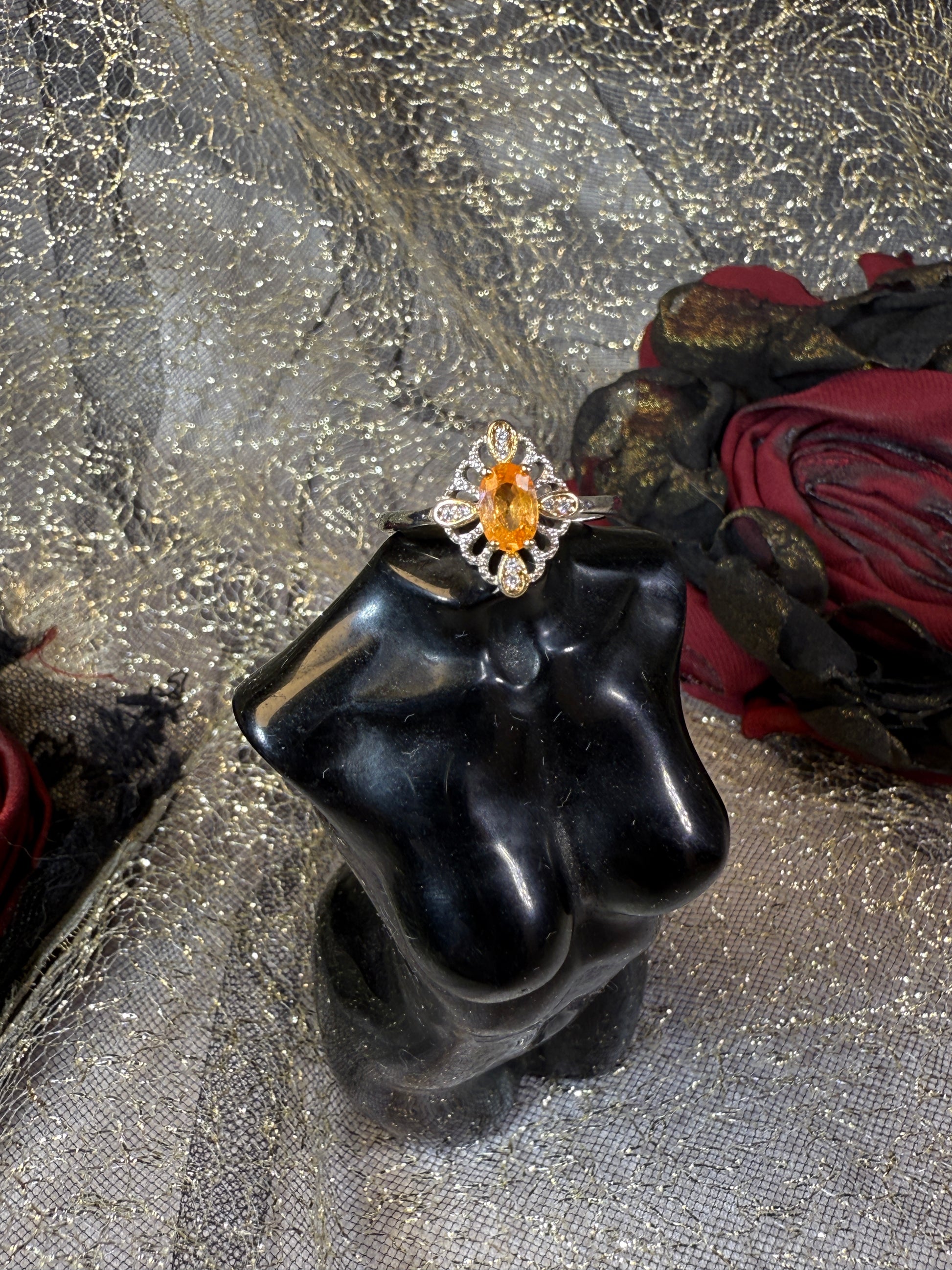 Like sunlight woven into lace — the Solar Lace ring features a radiant orange Fanta stone embraced by intricate silver filigree. Handcrafted in 925 sterling silver and designed with an adjustable band, it fits comfortably while igniting your aura with warmth, confidence, and creative spark. A timeless glow for every hand it touches.