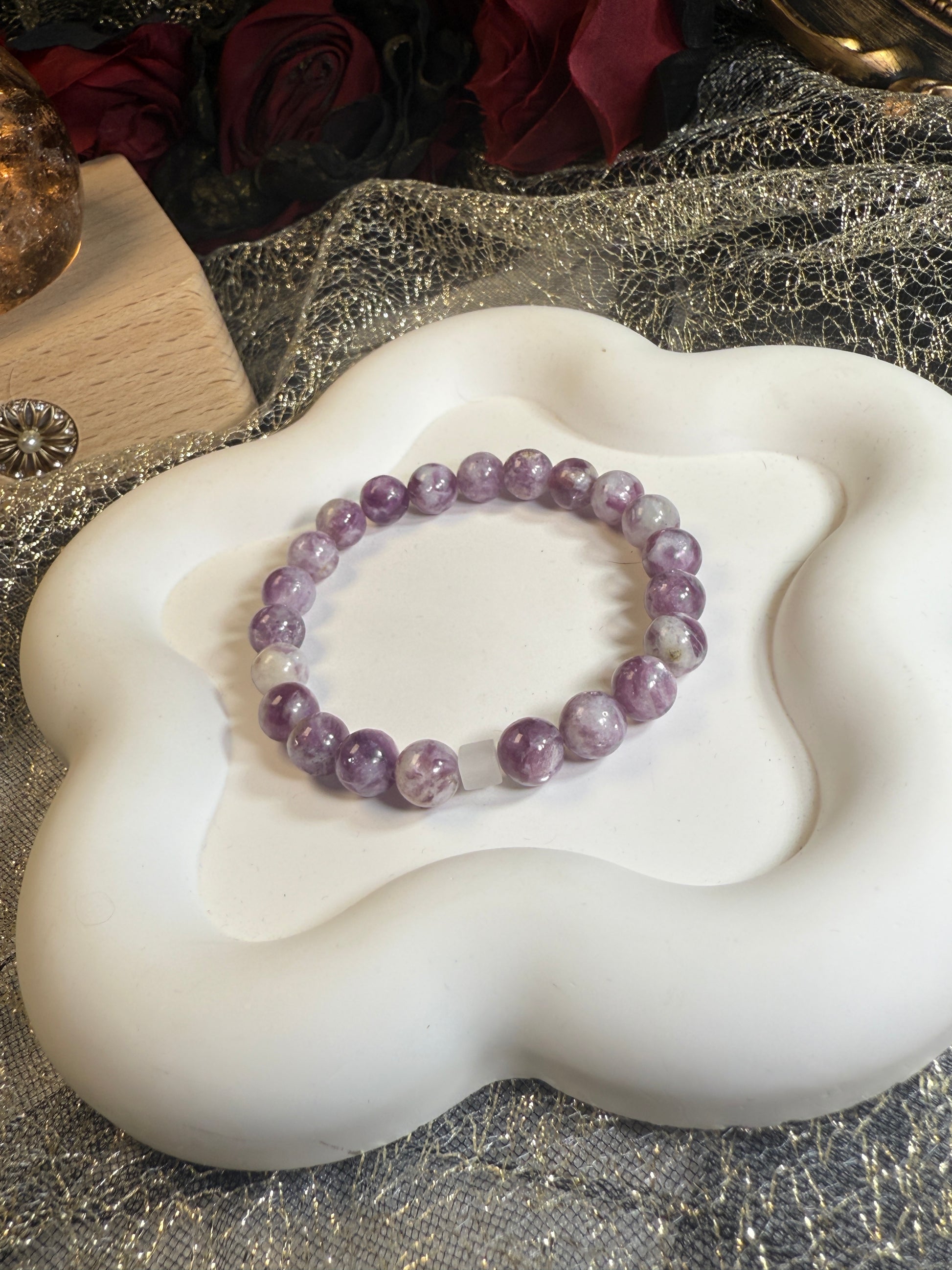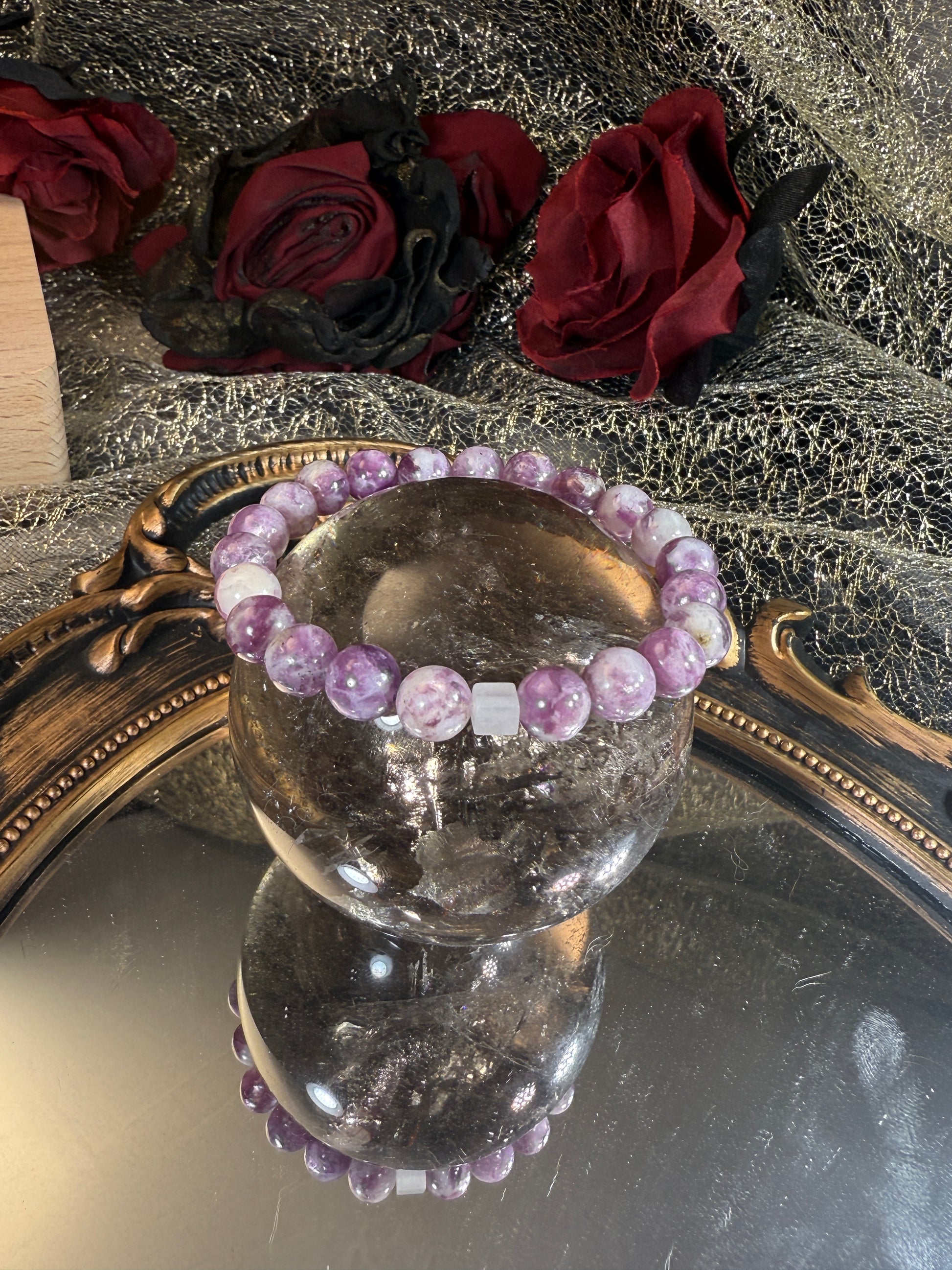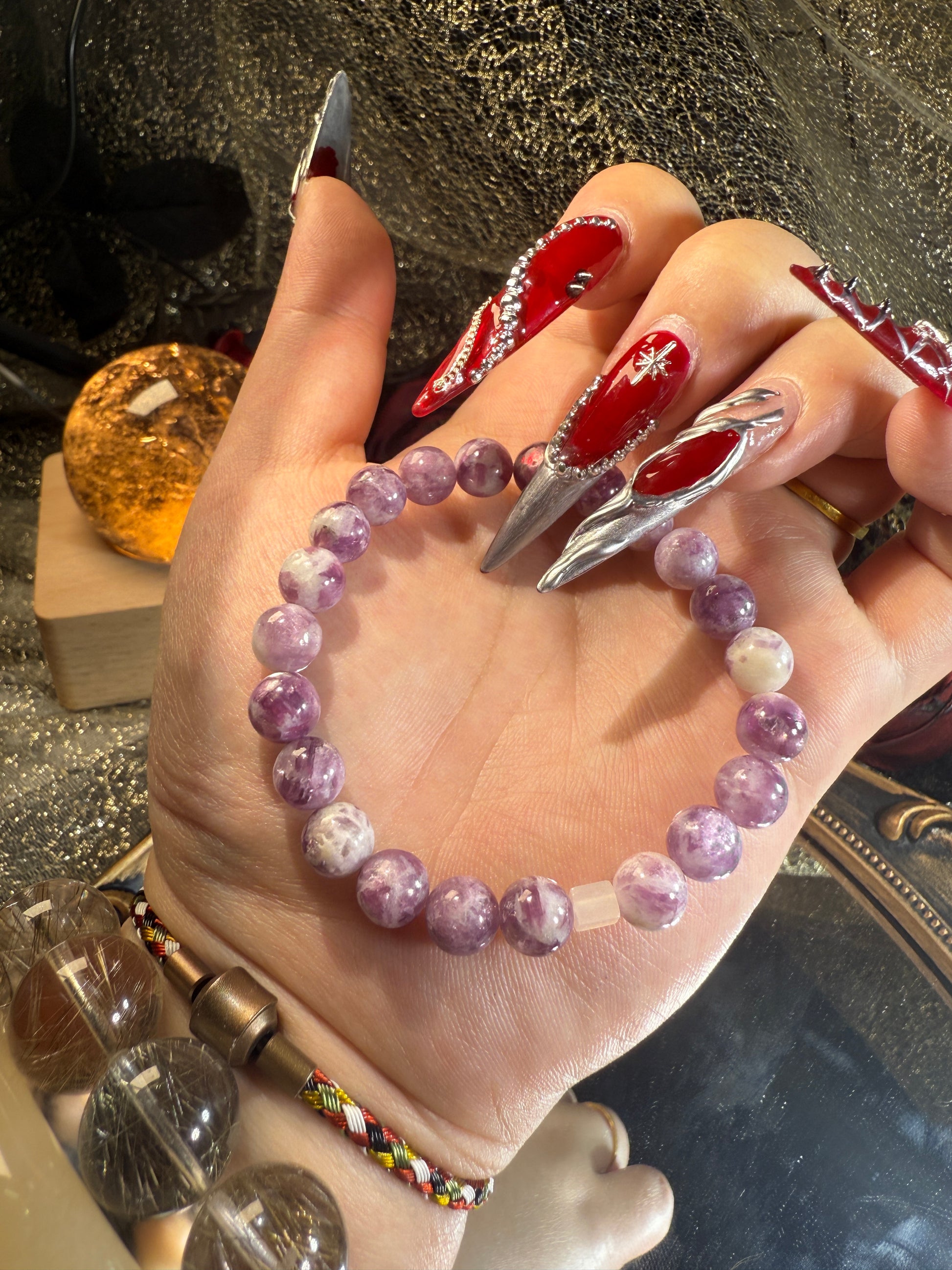 Lepidolite: Known for its calming and mood-stabilizing properties, Lepidolite is rich in lithium and supports emotional balance, relief from anxiety, and deep inner peace.